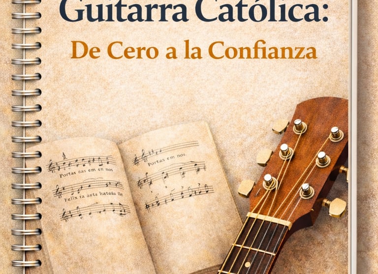 Recibe un paquete digital completo con cancionero católico, guías de acordes fáciles y rasgueos litúrgicos.